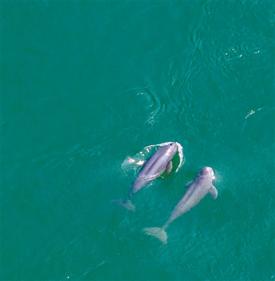 提升生态系统质量和稳定性 近年来,长江水质不断提升,部分重点保护物种数量上升。图为在湖北宜昌葛洲坝下游二江水域拍摄到的长江江豚。 王 罡摄(影像中国)