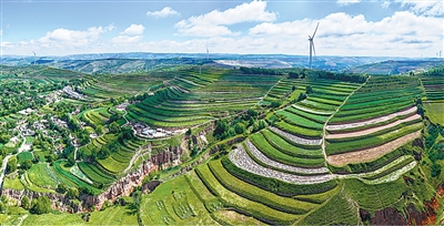 持续改善环境质量 在甘肃定西通渭县马营镇,经过系统治理,黄土高原上的层层梯田风景如画。 周修建摄(影像中国)