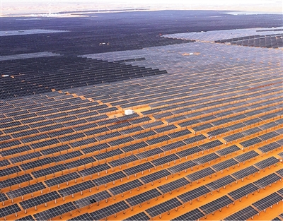 加快发展方式绿色转型 宁夏全力打好“三北”工程黄河“几字弯”攻坚战,截至今年5月底,已完成治理面积422万亩。图为宁夏中卫的腾格里沙漠新能源基地。 刘宣烨摄